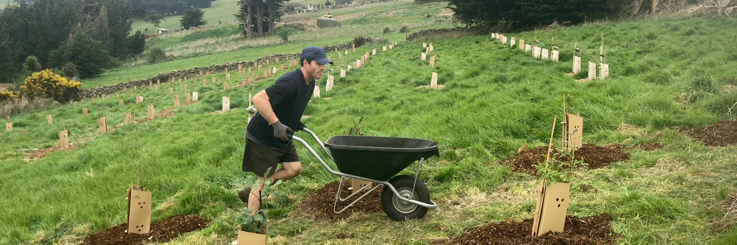 Imagine walking out of your home, through your diverse fruit orchard to a grove of hazelnuts and then into an exquisite woodland of birch, maple, oak and redwood trees. We designed with the contour of the slope on this Otago Peninsula property with orchard rows that ripen sequentially for ease of harvest and tree management. This also allowed us to match the rows with the seasonal sun for great fruit ripening. Nitrogen fixing support trees were planted within the orchard for soil improvement and shelter.